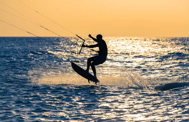Il mare cristallino e le dune bianche di Porto Pino e dintorni sono ancora più suggestive se viste dall'alto di un kitesurf e, d'altronde, da queste parti il vento non manca mai!